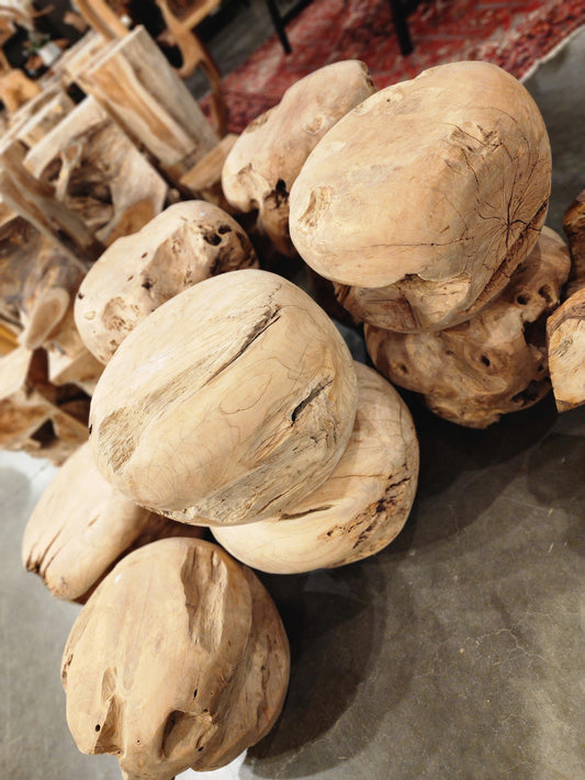 Old Growth Round Teak Side Table / Stool