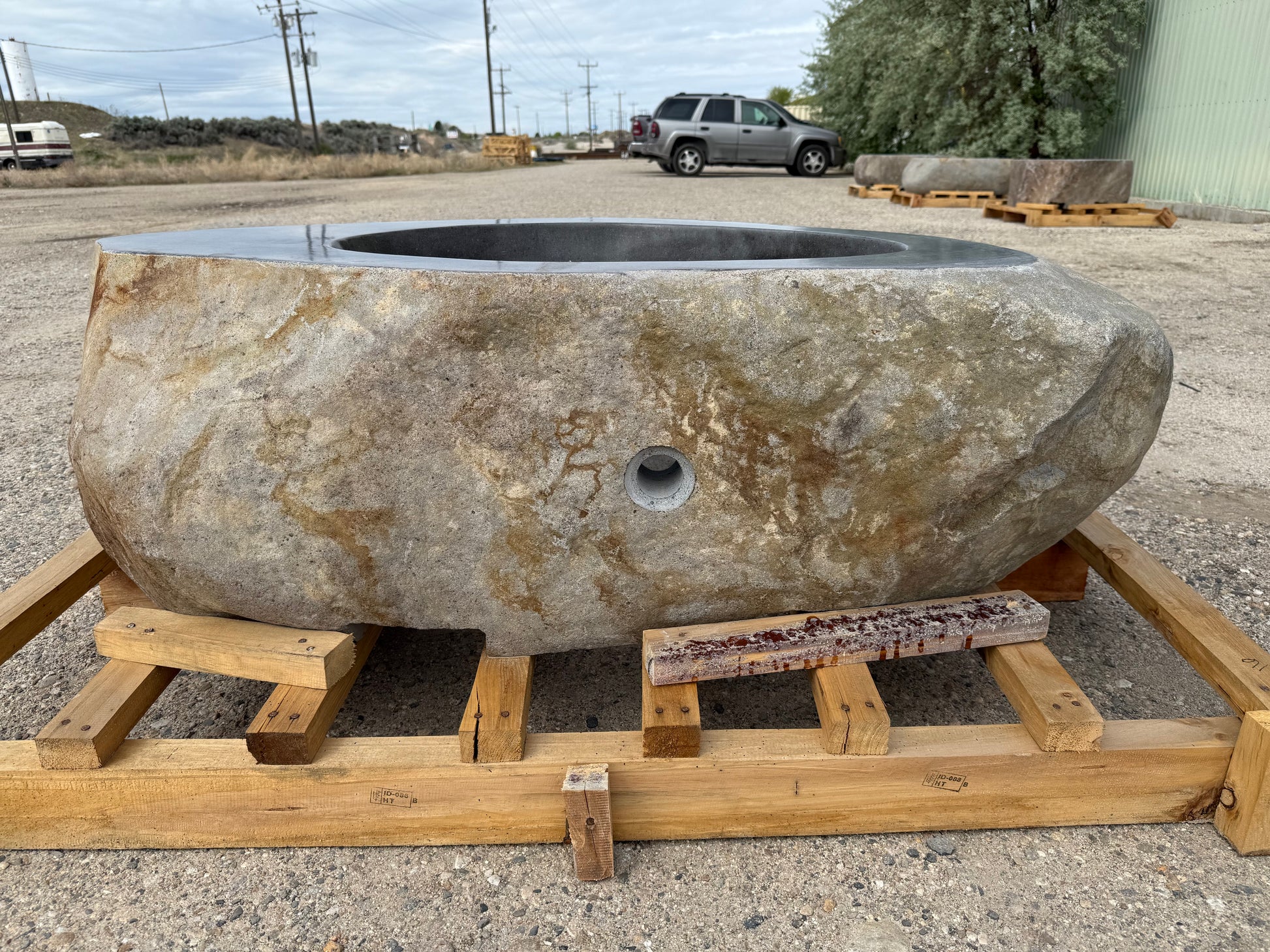 This large, unique natural stone fire pit is hand cut from a single piece of stone. The look and texture of this outdoor fire pit will blend perfectly and naturally in any outdoor living space. Building a new home or adding an outdoor living space? Then this is the fire pit for you! You are buying the fire pit shown in the first 6 pictures: #RBFP01