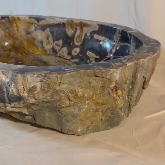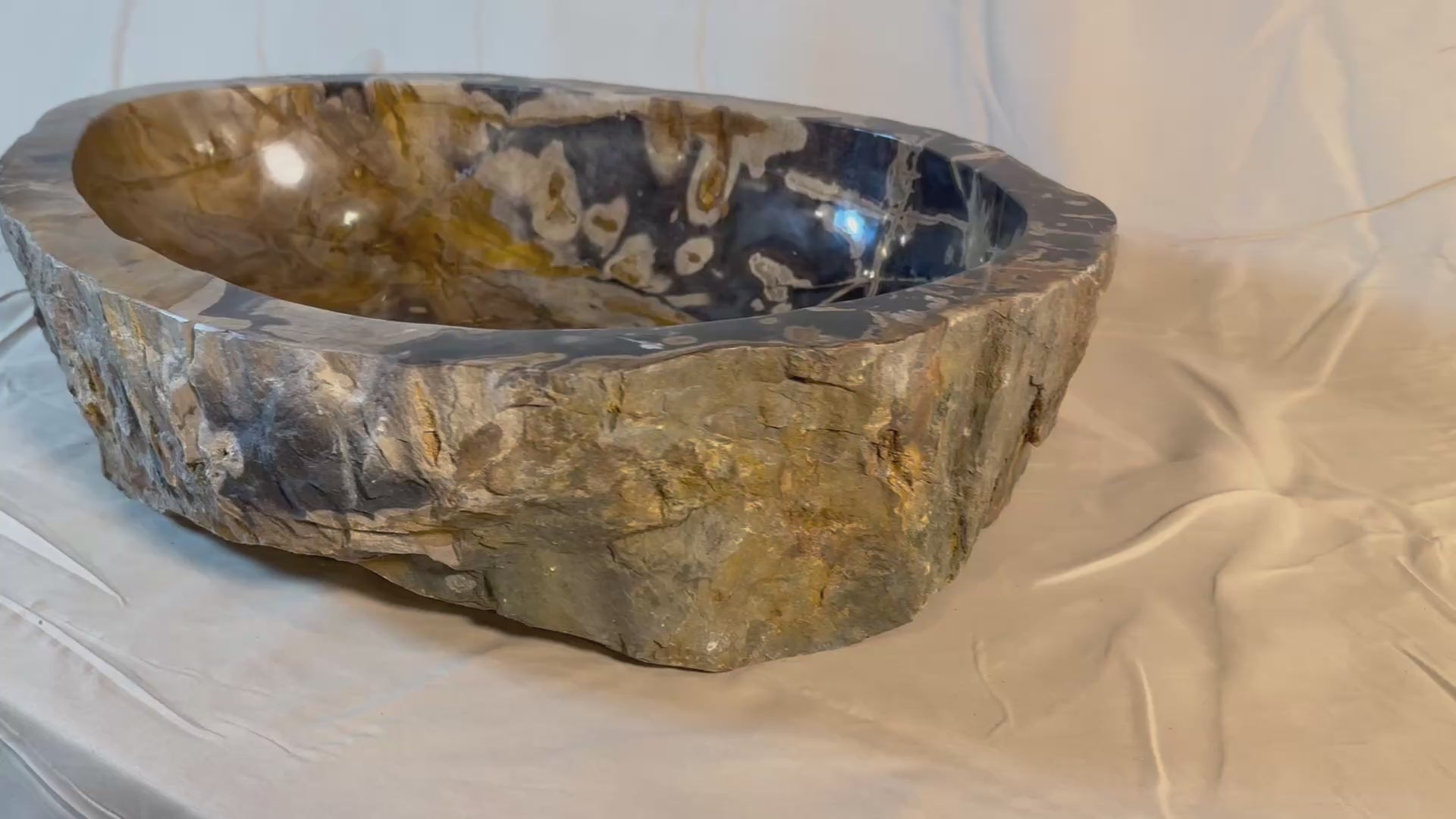 There is no sink more interesting than a stone vessel sink hand crafted from petrified wood and this one, with its petrified exterior bark, is truly unique! At one point in time, this stone was actually wood. You can read more about how petrified wood is created here.