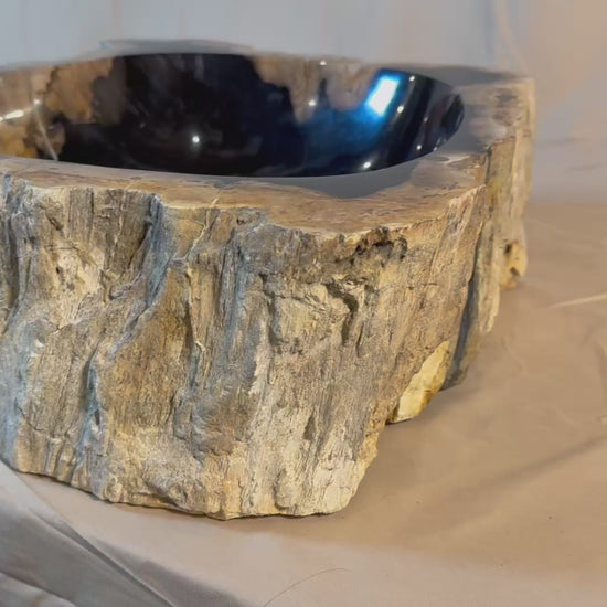 There is no sink more interesting than a stone vessel sink hand crafted from petrified wood and this one, with its petrified exterior bark, is truly unique! At one point in time, this stone was actually wood. You can read more about how petrified wood is created here.