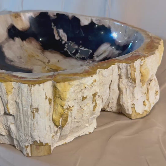 Petrified wood vessel sinks are one of the most unique products we offer. No two are even close to being the same shape or color. Each petrified wood vessel sink is hand cut from a single piece of stone, with a naturally organic, highly textural exterior and a highly polished lip and bowl. A standard vessel sink drain will fit the drain hole and we recommend a 'pop-up' style drain which will allow the water to drain quickly and easily. Use a mild liquid soap to clean the sink bowl and lip. Do not use any abrasive cleanser nor any acidic cleanser. We recommend using a stone sealer on the lip and bowl when installing this vessel sink and at least 1 time per year thereafter.