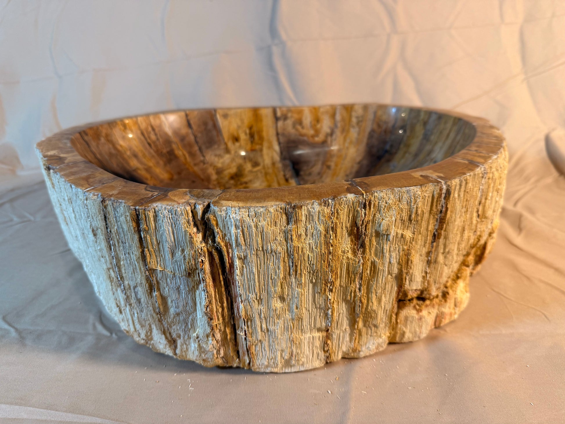 There is no sink more interesting than a stone vessel sink hand crafted from petrified wood and this one, with its petrified exterior bark, is truly unique! At one point in time, this stone was actually wood. You can read more about how petrified wood is created here.