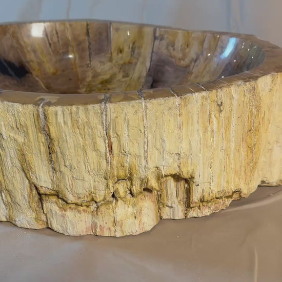 Petrified wood vessel sinks are one of the most unique products we offer. No two are even close to being the same shape or color. Each petrified wood vessel sink is hand cut from a single piece of stone, with a naturally organic, highly textural exterior and a highly polished lip and bowl. A standard vessel sink drain will fit the drain hole and we recommend a 'pop-up' style drain which will allow the water to drain quickly and easily. Use a mild liquid soap to clean the sink bowl and lip. Do not use any abrasive cleanser nor any acidic cleanser. We recommend using a stone sealer on the lip and bowl when installing this vessel sink and at least 1 time per year thereafter.