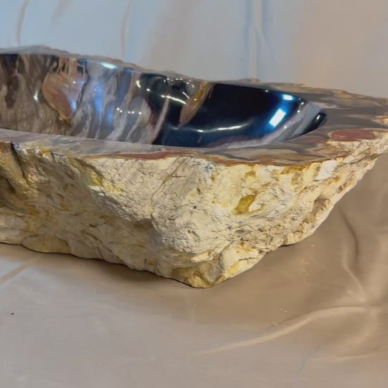 There is no sink more interesting than a stone vessel sink hand crafted from petrified wood and this one, with its petrified exterior bark, is truly unique! At one point in time, this stone was actually wood. You can read more about how petrified wood is created here.