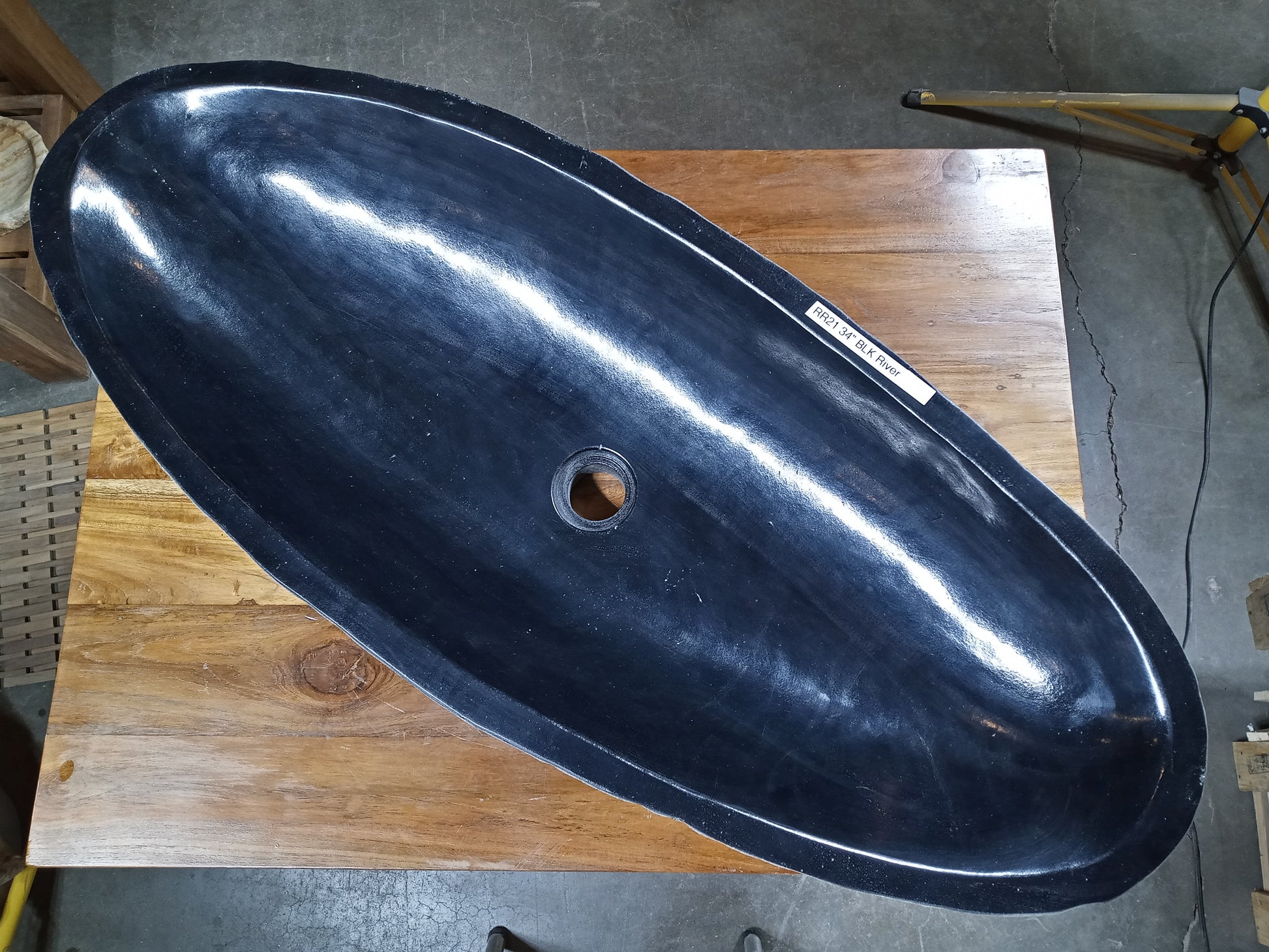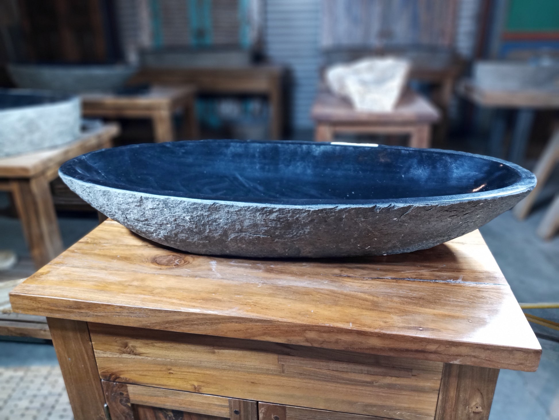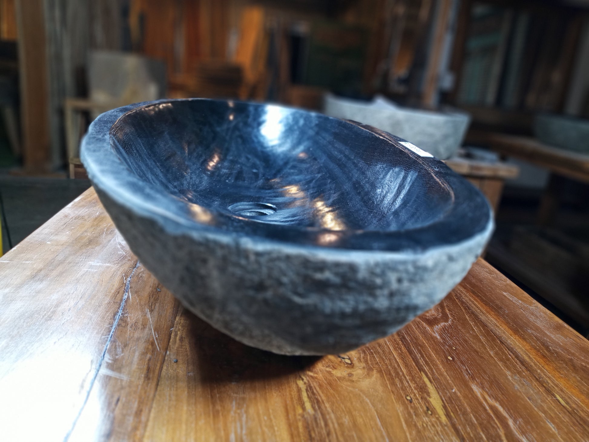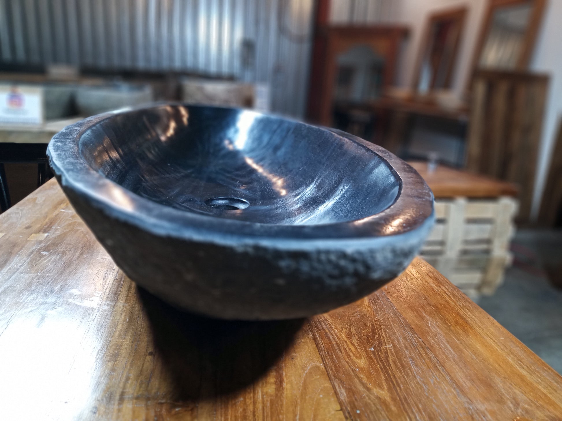 This stone vessel sink looks great on a contrasting teak wood vanity top or any stone surface. Consider installing your natural stone vessel sink on top of one of our reclaimed teak bathroom vanities for a warm, organic look.