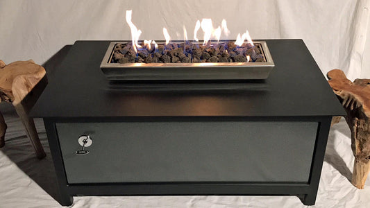 IMPACT Fire Table, Raven Black Frame, Silver Vein Powder Coated Side Panels